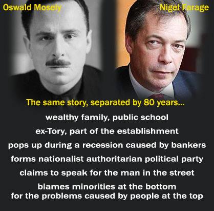 Farage is comparable with Mosely: he also tried to entice the working class, and those blue collar defectors who don’t feel solidarity with anyone except their “own kind” need to ask themselves how a fascist party would better reflect their interests, because fascists aren’t just fascists when it comes to your preferred target group – in this case migrants – fascists are fascists, full stop. And most migrants are working class, too.